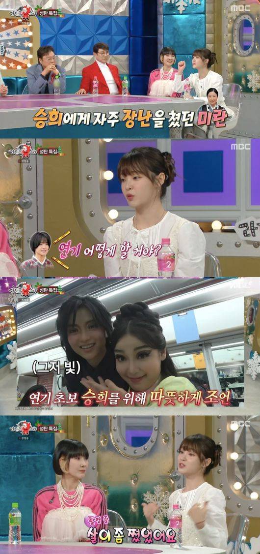 이날 승희는 드라마 ‘정년이’에서 호흡을 맞춘 라미란, 김태리와의 에피소드를 공개했다. 그는 “‘정년이’ 촬영 현장에서 라미란 선배님께서 국극 단장으로 나오셨다. 저를 되게 예뻐해주셨다. 차에 있으면 몰래 창문 두드리고 도망가시고 장난쳐주셨다”라고 회상했다.
