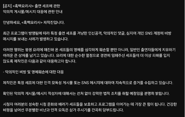 제작진은 이에 대해 “특정 셰프에 대한 인격 모독성 게시물과 메시지에 대해 지속적으로 증거를 수집 중”이라며 “확인된 작성자에 대해서는 선처 없이 강력한 법적 조치를 취할 것”이라고 못 박았다.