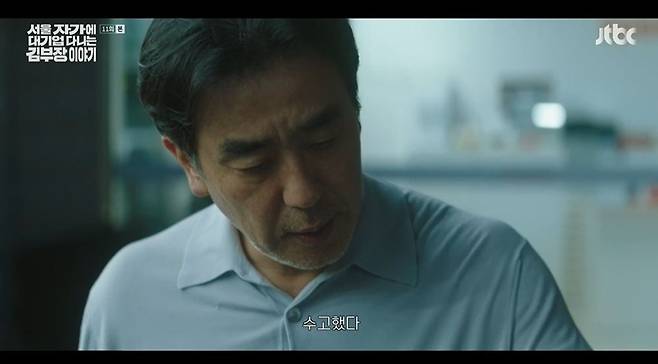 29일 방송된 JTBC 토일드라마 '서울 자가에 대기업 다니는 김 부장 이야기'(이하 '김 부장 이야기') 11화에서는 김낙수(류승룡 분)가 카센터에서 일하는 모습이 그려졌다.