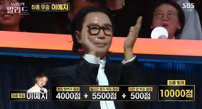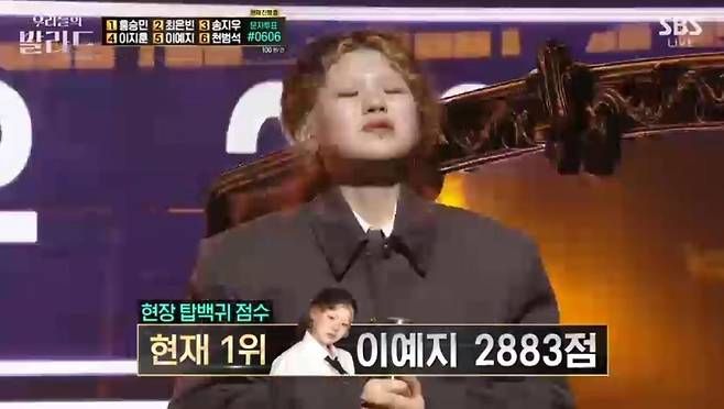 이예지는 결국 현장 탑백귀 투표에서 2883점을 얻으며 압도적인 점수로 이지훈을 제치고 1위에 올랐다.