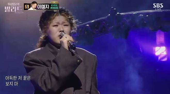 이후 이예지가 다섯 번째로 무대에 올랐다. 이예지는 윤종신의 '오르막길'을 선곡해 특유의 허스키한 음색으로 절절한 무대를 선보였다.
