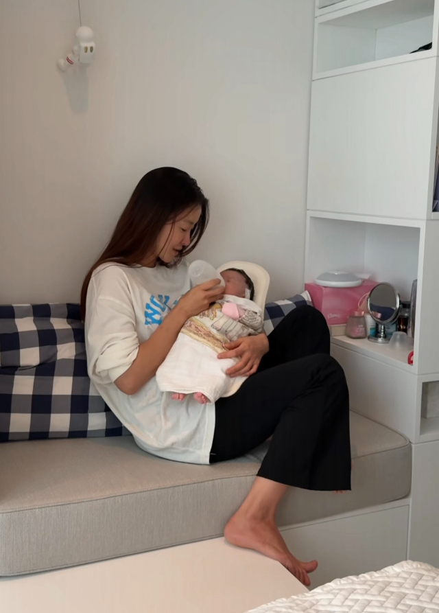 이시영, 미숙아 딸 한 달 만에 3kg… 체중계도 신나 “1.9kg에서 이렇게 자라”
