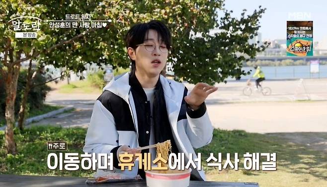 그런 가운데 안성훈의 일상이 공개됐다. 한강에서 달리기로 아침을 연 안성훈은 "'뛰어야 산다'에서 러닝을 배워서 열심히 하고 있다"라며 프로그램이 끝난 후에도 달리고 있다고 밝혔다. 달린 후 안성훈은 한강에서 라면을 먹으며 "지방 스케줄이 많다 보니 휴게소에 무조건 들러서 식사한다. 행사 가는 길에 라면 한 끼, 올라오는 길에 라면 한 끼"라며 면 마니아라고 밝혔다.