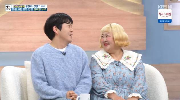 16일 오전 방송된 KBS1 '아침마당' 화요초대석에는 개그맨 홍윤화, 김민기 부부가 게스트로 출연했다.