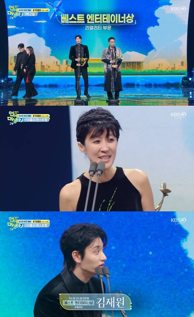 (엑스포츠뉴스 정민경 기자) '2025 KBS 연예대상'에서 은지원, 김재원, 홍진경, 문세윤이 베스트 엔터테인먼트상의 영예를 안았다.