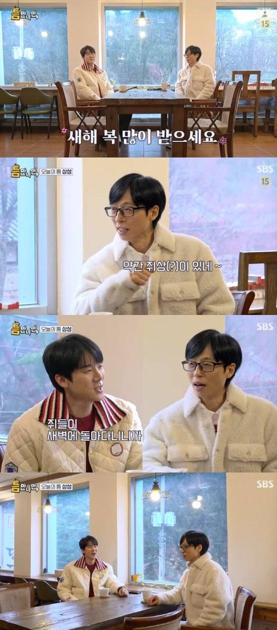 이날 새해 첫 녹화를 위해 만난 유재석과 유연석은 새해 인사를 건네면서 오프닝을 시작했다. 유재석과 유연석은 각각 72년생 쥐띠, 84년생 쥐띠였다.