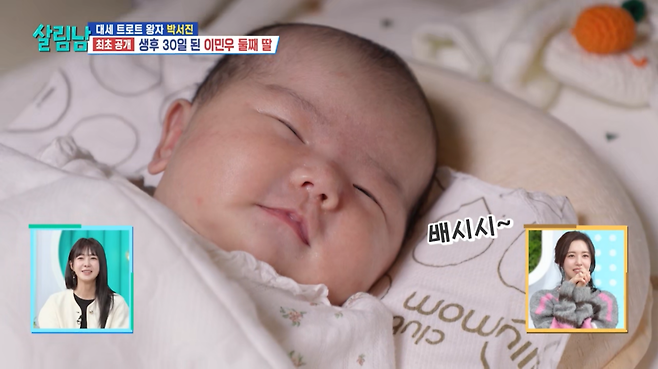 이날 방송에서는 둘째 딸 출산 이후 바뀐 이민우·이아미 부부의 일상이 그려졌다. 가수 박서진이 집을 찾았고, 생후 30일 된 둘째 딸 태명 ‘양양이’를 조심스럽게 안아보는 모습이 공개됐다. 이민우 부부는 방송을 통해 둘째 딸의 이름이 ‘이우주’라고 밝혔다.
