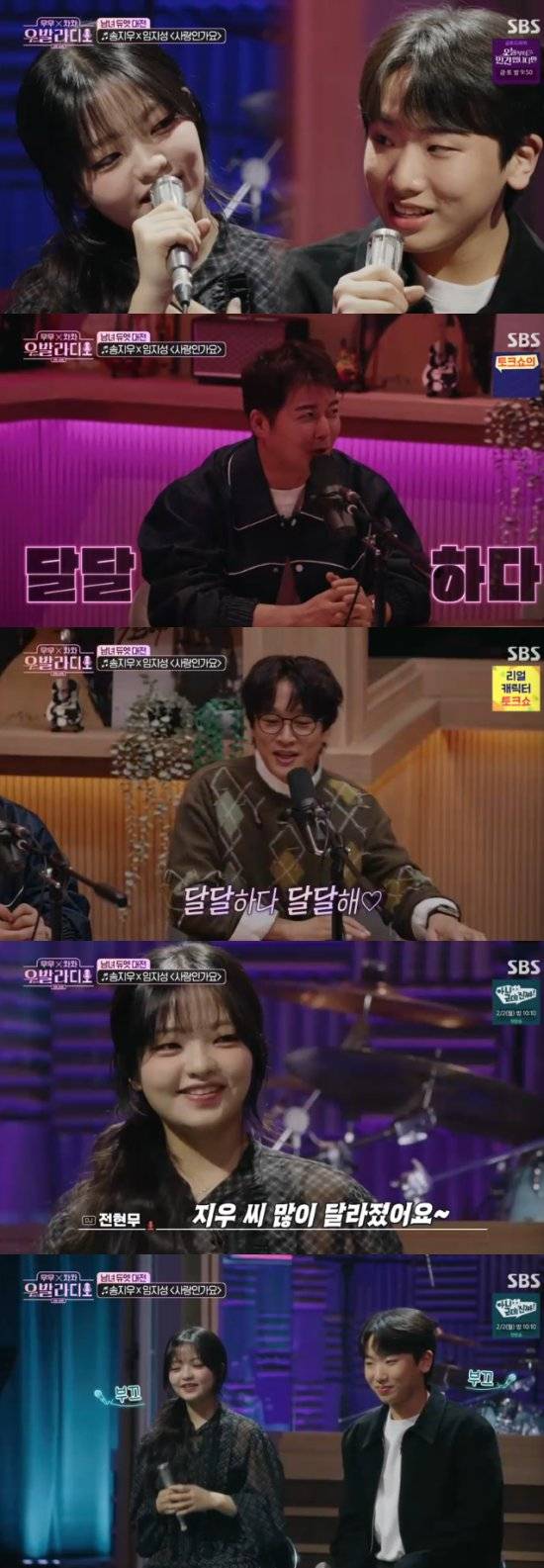 전현무는 송지우를 향해 "지우 씨가 많이 달라졌다"고 했고, 송지우는 부끄러워해 분위기를 후끈 달아오르게 했다. 송지우와 듀엣 경험이 있는 홍승민도 "저랑 할 때는 지우가 저렇게 안 쳐다봤던 것 같은데, 지성이한테는 꿀이 떨어지네요"라면서 질투를 하기도 했다.