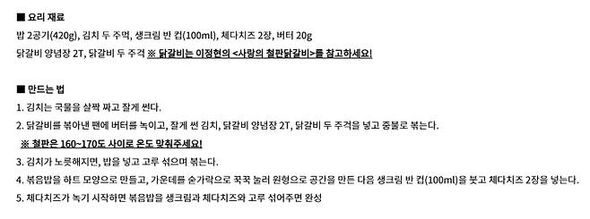 '편스토랑' 이정현 크림소스·닭갈비·닭고기전골·로제볶음밥 레시피